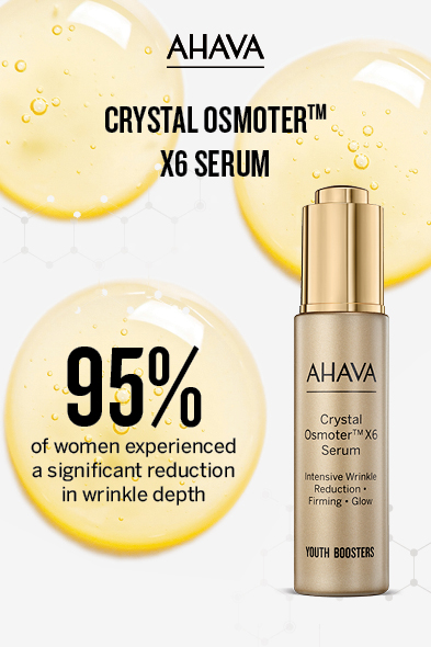 Αυτός ο καινοτόμος ορός βασίζεται στον αποκλειστικά πατενταρισμένο Osmoter™ X6 της AHAVA: έξι φορές υψηλότερη συγκέντρωση Osmoter™, το χαρακτηριστικό μείγμα ορυκτών της Νεκράς Θάλασσας. Μετατρέπει τα μέταλλα σε άνυδρες κρυσταλλικές δομές. Ενσωματωμένα σε φυτικά έλαια αντιγήρανσης, επιτρέπουν την παράδοση ισχυρών συστατικών στα βάθη του δέρματος. Αυτός ο ορός μειώνει την εμφάνιση των ρυτίδων, προάγει τη σφριγηλότητα και ενισχύει αμέσως τη νεανική λάμψη του δέρματος. Μετά από μόλις τέσσερις εβδομάδες, το 95% των γυναικών είδε λιγότερο έντονες ρυτίδες και το 85% ανέφερε σημαντική αύξηση στην ελαστικότητα του δέρματος. Η μελέτη πραγματοποιήθηκε από ανεξάρτητο κλινικό εργαστήριο σε 40 γυναίκες συμμετέχουσες ηλικίας 40-60 ετών με μία εφαρμογή την ημέρα και υπό την επίβλεψη καθηγητή δερματολογίας.