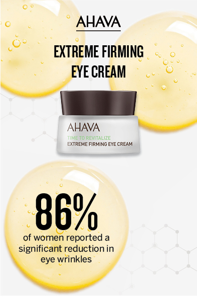 Αυτή η πολυτελής κρέμα ματιών διαθέτει το πατενταρισμένο σύμπλεγμα EXTREME™ της AHAVA, ένα μοναδικό μείγμα συστατικών που προέρχονται από τα υψηλότερα και τα χαμηλότερα σημεία της γης: βοτανικά εκχυλίσματα από τα βουνά των Ιμαλαΐων σε συνδυασμό με ισχυρά ορυκτά της Νεκράς Θάλασσας. Εμπλουτισμένη με κόκκινα μικροφύκια, αυτή η κρέμα έχει σχεδιαστεί για να συσφίγγει και να συσφίγγει, να μειώνει τις ρυτίδες και να ενυδατώνει σε βάθος την ευαίσθητη περιοχή των ματιών. Σε μόλις τέσσερις εβδομάδες, το 86% των γυναικών παρουσίασαν αισθητή μείωση των ρυτίδων και ενισχυμένη ομαλότητα γύρω από τα μάτια. Αυτό το εύρημα προέρχεται από μια μελέτη που διεξήχθη από ένα ανεξάρτητο κλινικό εργαστήριο, στην οποία συμμετείχαν 52 γυναίκες ηλικίας 40 ετών και άνω, οι οποίες εφαρμόζουν την κρέμα καθημερινά υπό την καθοδήγηση ειδικού καθηγητή δερματολογίας.