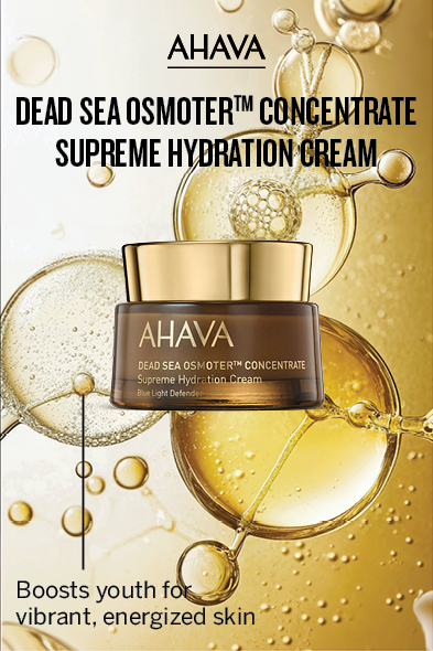 This innovative cream is based on AHAVA’s exclusively patented DSOC™ technology: a X3 concentration of Osmoter™, our signature blend of hydrating Dead Sea minerals, clinically proven to supercharge the skin’s hydration, detox and energy activities. Combined with the benefits of Indian Ginseng roots, it defends against the blue light emitted from digital screens, which damages the skin’s vitality. It helps reduce the appearance of premature signs of aging and provides all-day hydration.