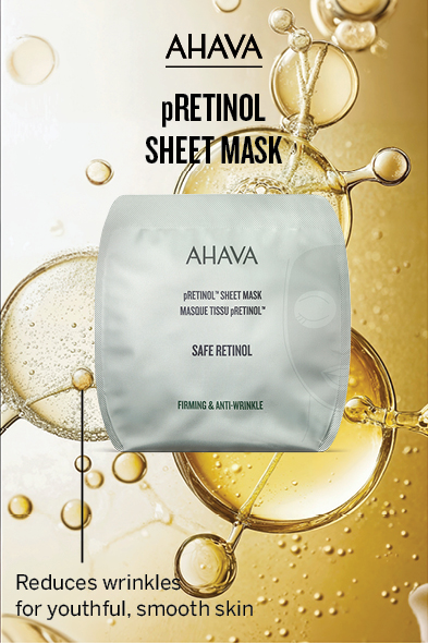 Esta máscara de tecido (sheet mask) concentrada baseia-se na patente exclusiva pRetinol™ da AHAVA, que fornece à pele precursores de Retinol que a própria pele converte em Retinol. Trata-se de uma alternativa segura e “natural para a pele” ao Retinol tradicional, feita à medida para o seu rosto, com todos os benefícios e nenhum dos efeitos secundários. Infundida com extratos de frutos e ácido hialurónico, esta máscara combate a tez baça, atua sobre as rugas e linhas finas, refirma, hidrata e potencia a luminosidade da pele.